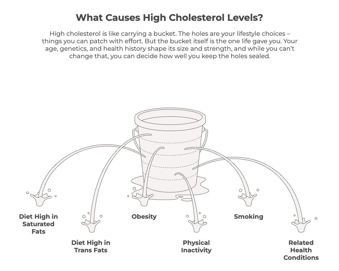 If you have too much cholesterol and too many saturated and trans fats in your diet, alongside less-than-stellar lifestyle habits, you tip the balance, and that’s when you get those high cholesterol levels your doctor side-eyes on your labs.